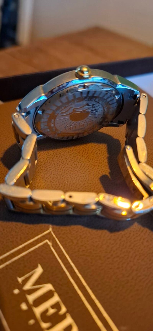 Dit horloge komt uit een privécollectie en is belegd met schitterende steentje in parelmoer. Extra schakels bij en een genot om mee te pronken..